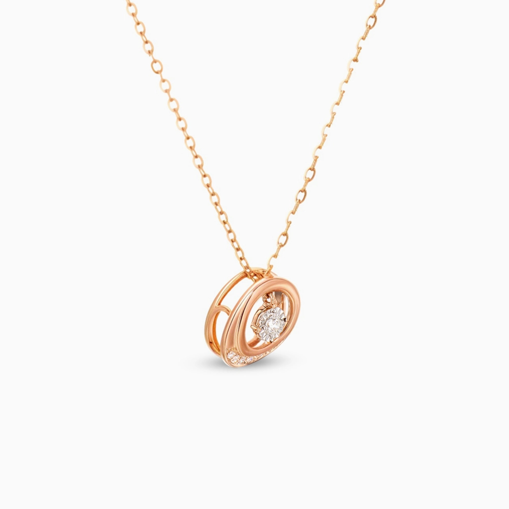 تجسيد للأناقة العصرية، قلادة دائرية من الذهب الوردي عيار 18 مع الماسة متدلية تمنحك حضوراً لافتاً وتبرز رقي شخصيتك في كل مناسبة.