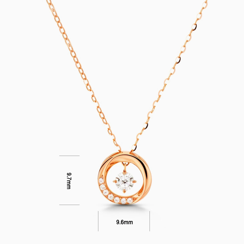 استمتعي بجمال التفاصيل مع قلادة دائرية ملتفة من الذهب الوردي عيار 18 وماسة متدلية. قطعة تجمع بين الإبداع والدقة لتمنحك لمسة فريدة من الفخامة.
