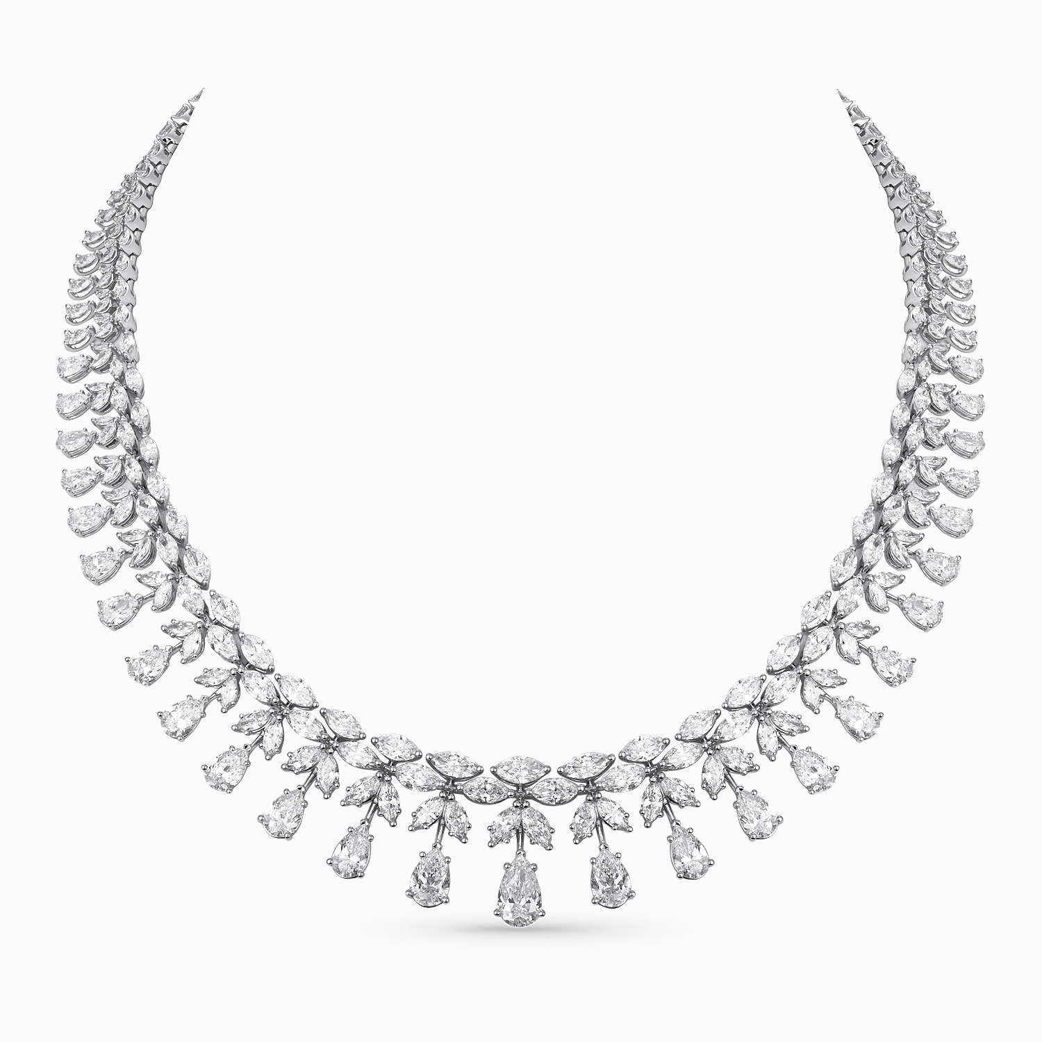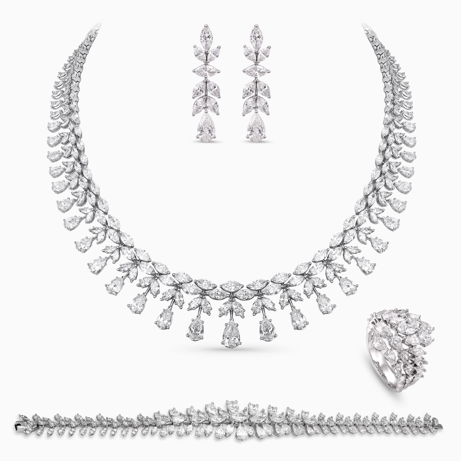Botanical Diamond Jewelry Set in 18K White Gold with Layered Floral Design