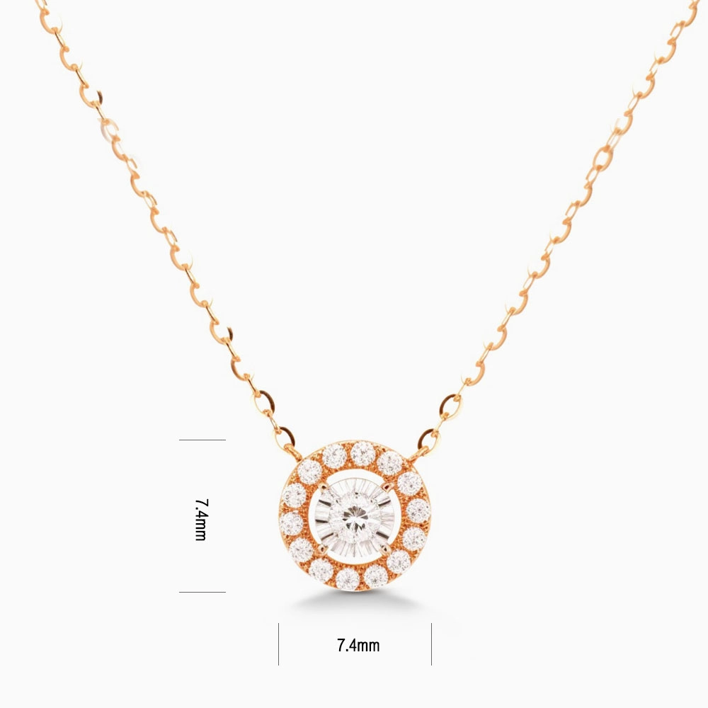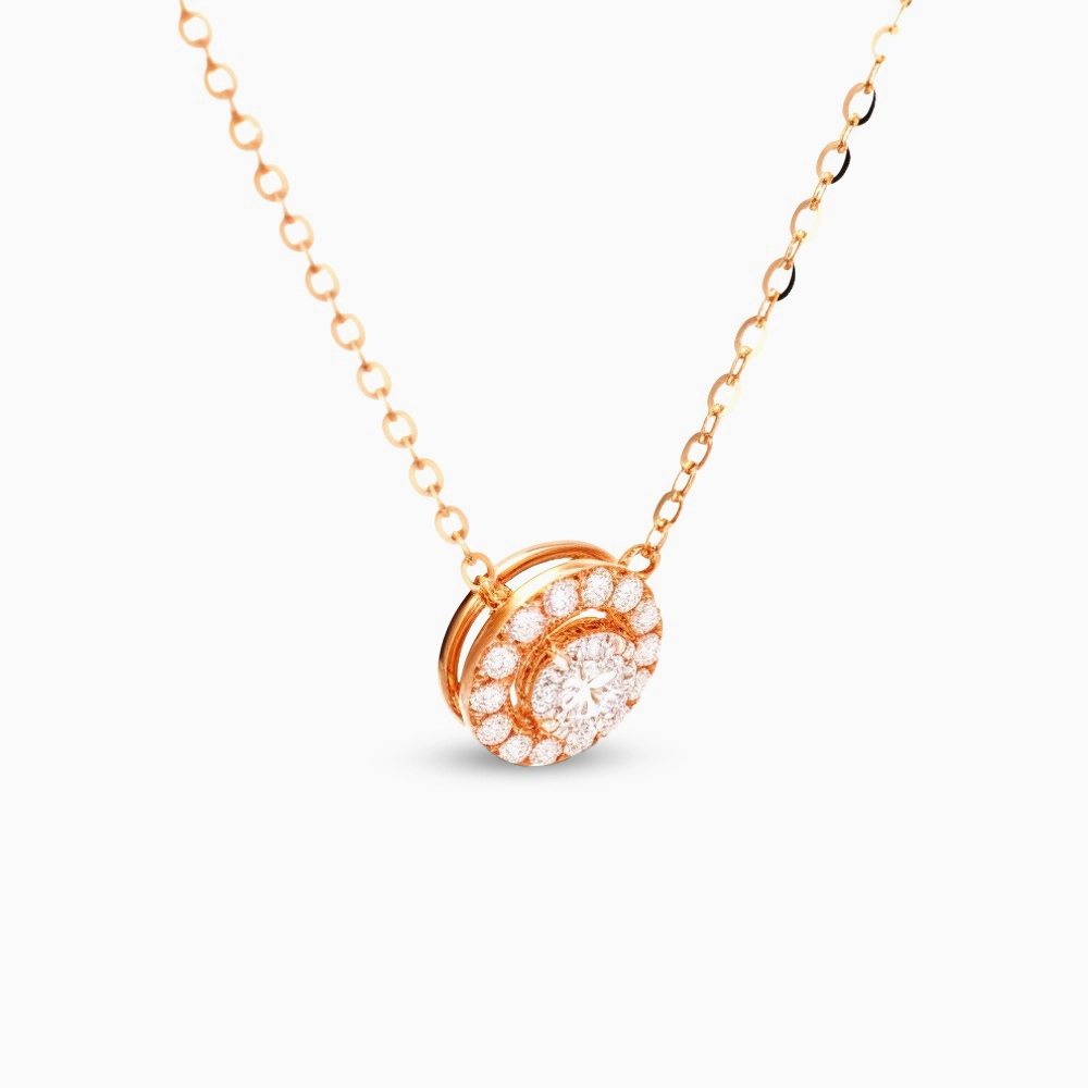 Uncover the story behind the Halo Diamond Circle Pendant Necklace in Rose Gold – Radiant Brilliance from Omnia Collection. Halo diamond necklace. A luxurious creation that embodies elegance, craftsmanship, and timeless beauty.
