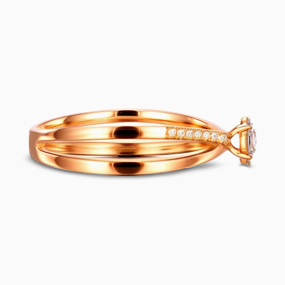 Simplicity meets elegance in the Rose Gold Solitaire Diamond Ring with Diagonal Pavé Accent – Twisted Spark from Omnia Collection. Solitaire diamond ring. A luxurious creation that embodies elegance, craftsmanship, and timeless beauty.