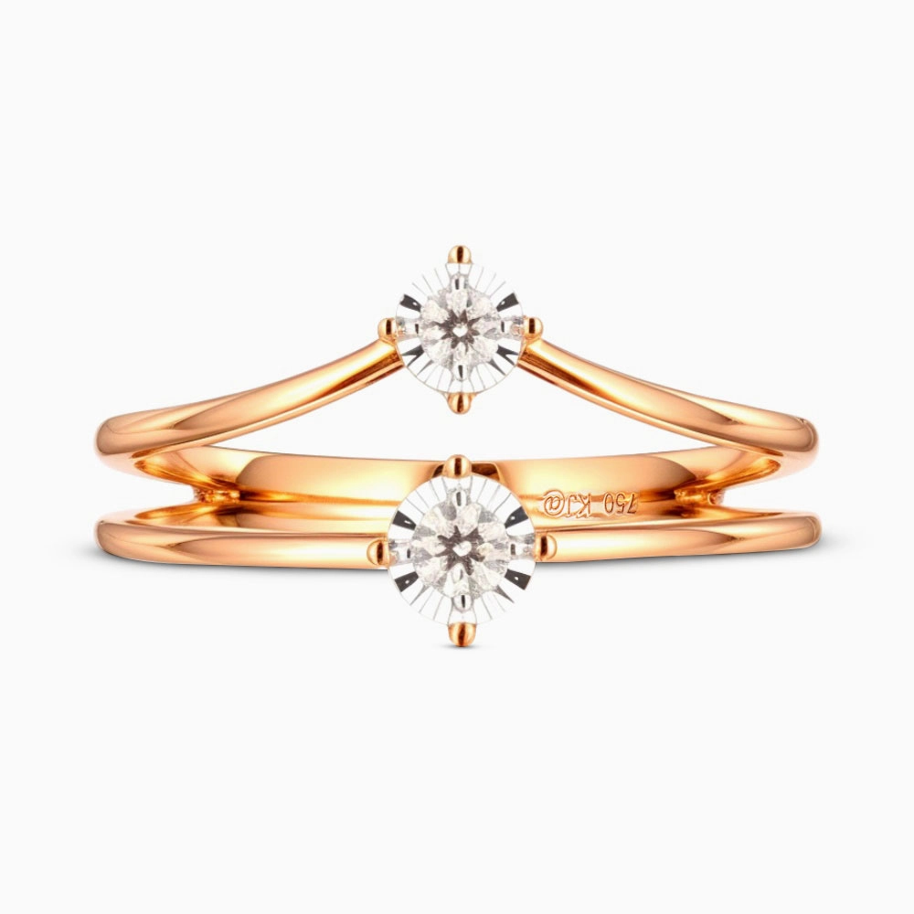Discover the timeless charm of the Rose Gold Twin Diamond Ring – Minimalist Bypass Elegance from Omnia Collection. Twin diamond ring. A luxurious creation that embodies elegance, craftsmanship, and timeless beauty.